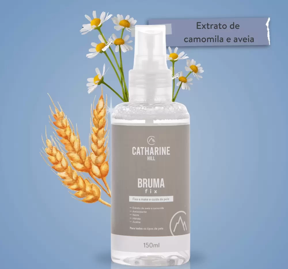 A Bruma Fixadora Brumafix – Catharine Hill é um spray fixador que prolonga a durabilidade da maquiagem enquanto hidrata e revitaliza a pele. Com fórmula vegana, livre de parabenos e enriquecida com extratos de aveia e camomila, oferece acabamento natural, sensação refrescante e toque suave.