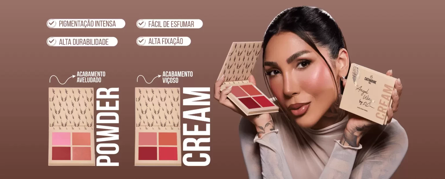 A Paleta Angel Blush Cream – Angel Wings by Pri Lessa, Catharine Hill foi desenvolvida para proporcionar um rubor natural e sofisticado à maquiagem. Com textura cremosa e confortável, os blushes deslizam facilmente sobre a pele, oferecendo aplicação uniforme e acabamento luminoso sem pesar.